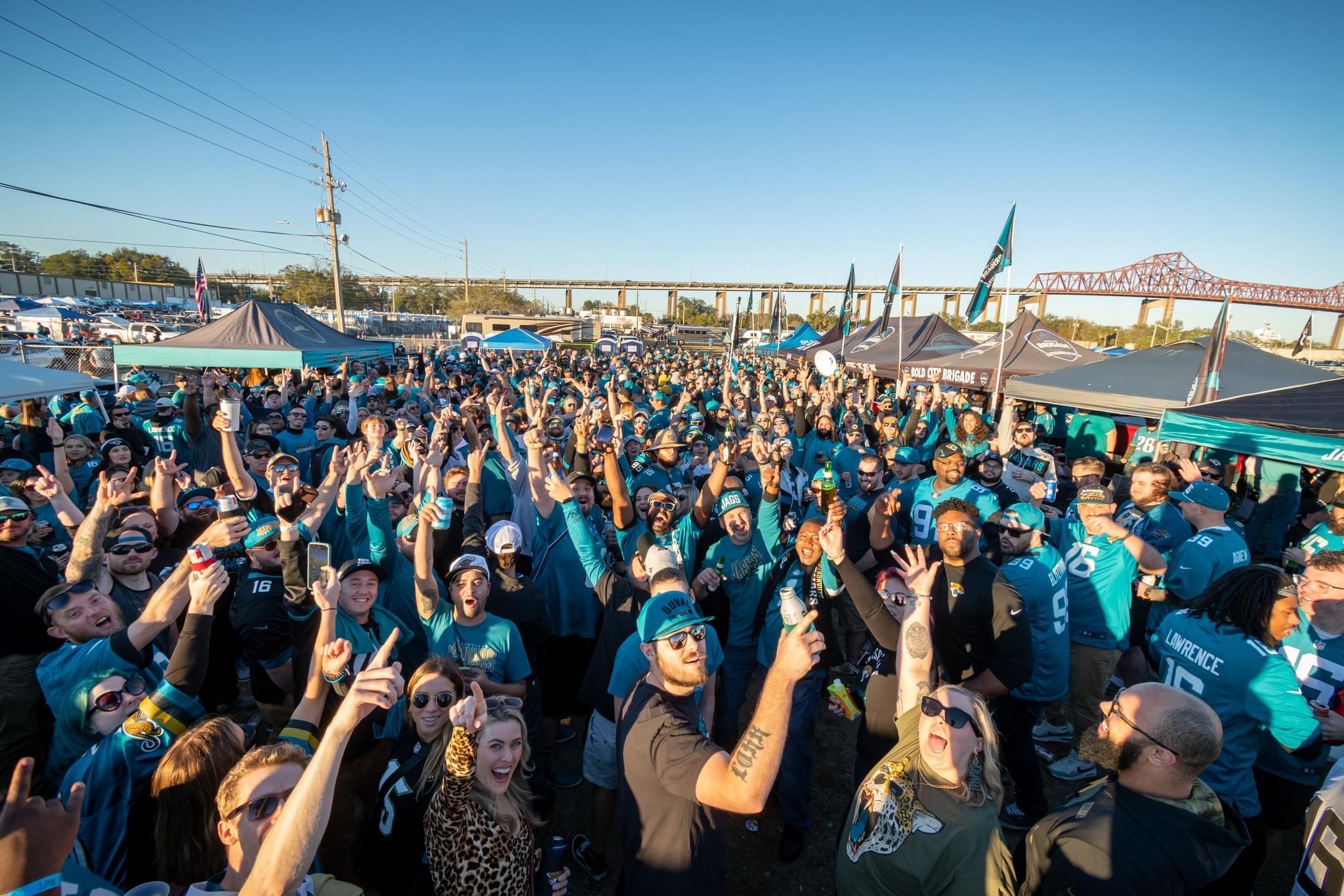 We Partnered with Bold City Brigade of Jacksonville to Host an Incredible All-Inclusive Tailgate Event in Kansas City for the Playoff Game! Our All-Inclusive Tailgate Experience at A Great Location Across Blue Ridge Cutoff from Arrowhead Stadium! For One Flat Price you can Tailgate As Much as You Want for 3 Hours Prior to the Event Time while Enjoying All-Inclusive Food and Drinks, Live Entertainment, Games, and Much More!